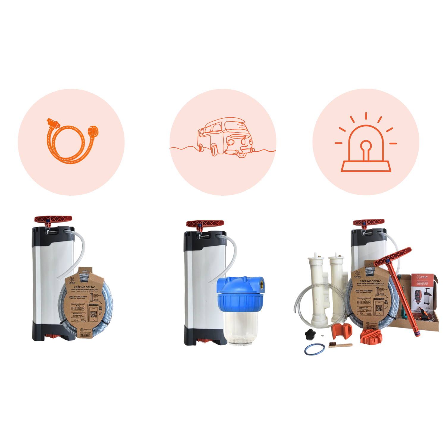 Le Pack ORISA® Nomad est conçu pour l'itinérance, offrant une solution de filtration d’eau fiable, légère et facile à emporter. Idéal pour rester autonome, où que vous soyez.