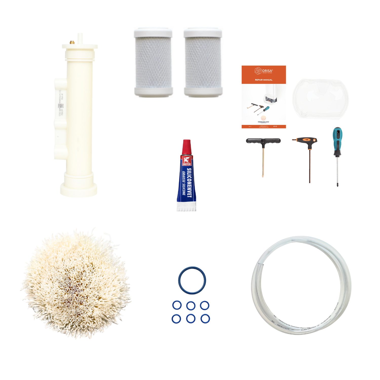 Membrane d'ultrafiltration, outils, graisse silicone, brosse préfiltre, entretenez votre purificateur d'eau ORISA®...