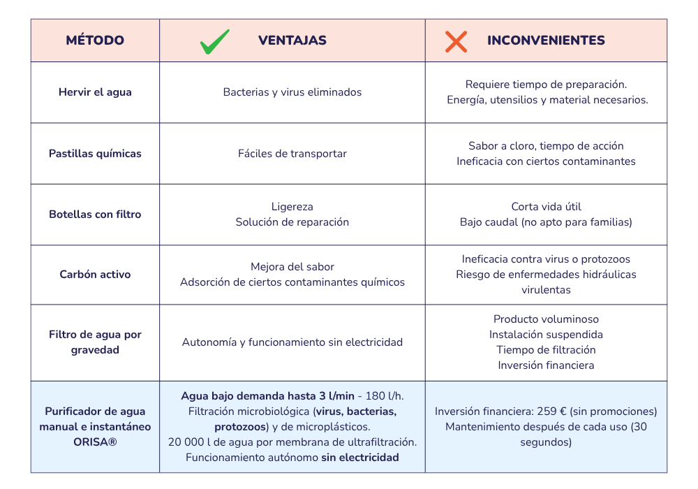 ✅ El purificador de agua ORISA® le permite potabilizar agua dudosa o sin tratar.