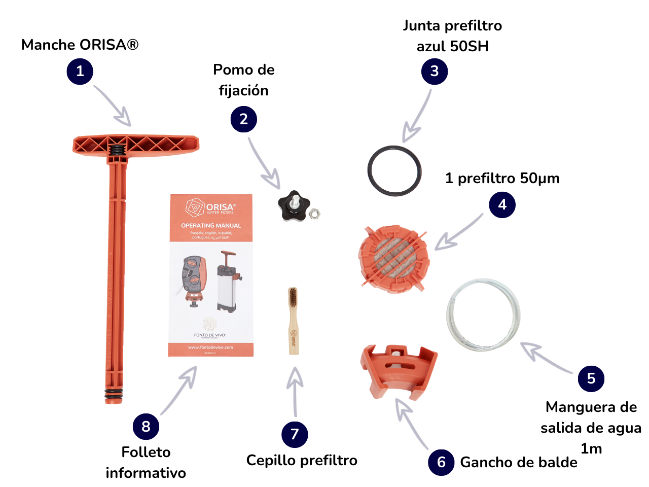 El mango ORISA® es la pieza imprescindible para el bombeo y por tanto para la filtración del agua. Es ergonómico y favorece un buen agarre. También es funcional gracias a su reserva de juntas en la parte superior. En su base se prevé un alojamiento para alojar dos juntas* que aseguran la estanqueidad del sistema.